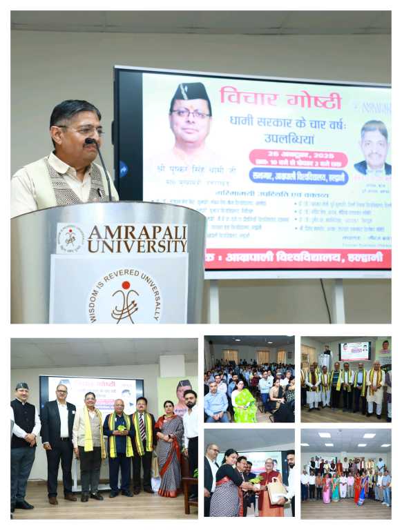 प्रो. (डॉ.) एन. एस. बिष्ट, कुलपति, आम्रपाली विश्वविद्यालय, हल्द्वानी, ने कहा कि धामी सरकार की नीति और नियत स्पष्ट है, और राज्य हर क्षेत्र में नए विकास के आयाम स्थापित कर रहा है।