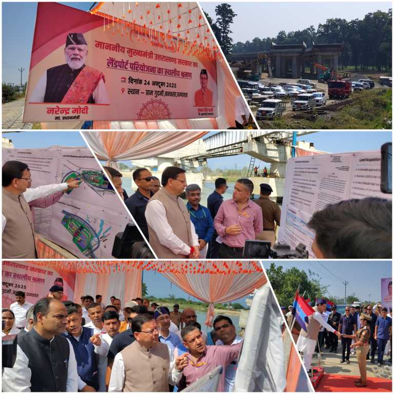 बनबसा(उत्तराखंड)- प्रदेश के मुख्यमंत्री पुष्कर सिंह धामी शुक्रवार को अपने तय कार्यक्रम अनुसार अपनी विधानसभा चंपावत के बनबसा गुदमी क्षेत्र दौरे पर पहुंचे।इस अवसर पर सीएम धामी ने भारत सरकार की महत्वपूर्ण परियोजना लैंड पोर्ट का निरीक्षण किया।सीएम धामी ने इस आकार पर लैंड पोर्ट अथॉरिटी के अधिकारियों से निर्माण संबंधित जानकारी ली। इस अवसर पर मीडिया से रूबरू होते हुए सीएम धामी ने कहा की आज उन्होंने भारत नेपाल के बीच यातायात सुगमता एवं व्यापारिक गतिविधियों के बड़ाबे हेतु भारत से नेपाल को जोड़ने वाले चार किलोमीटर लंबे फोर लेन एलिवेटेड सड़क निर्माण का कार्य किया है।वही व्यापारी गतिविधियों के बड़ावे हेतु लैंड पोर्ट का निर्माण गतिमान अभियान गतिमान है।उन्होंने लैंड पोर्ट निर्माण संबंधी आवश्यक जानकारी ली है।