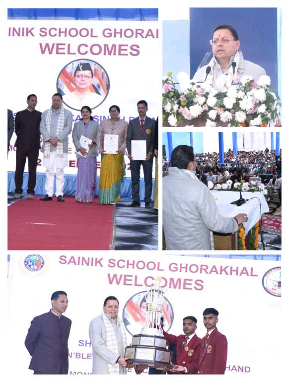 मुख्यमंत्री ने कहा कि ये विशिष्ट विद्यालय आपको सिर्फ किताबी शिक्षा नहीं देता बल्कि आपके व्यक्तित्व तथा भविष्य का निर्माण भी करता है। उन्होंने कहा कि यहां एक अच्छा नागरिक, एक आदर्श सैन्य अधिकारी और सबसे महत्वपूर्ण एक अच्छा एवं अनुशासित इंसान बनने की सीख एवं प्रेरणा मिलती है। उन्होंने छात्रों से कहा कि इस विद्यालय में पढ़ते हुए उनमें कब नेतृत्व, शौर्य और जिम्मेदारी की भावना विकसित हो जाएगी, इसका पता उन्हें इस स्कूल से जाने के बाद लगेगा। क्योंकि ये बात यहां से पास आउट होकर बड़े सैन्य अधिकारी बने बहुत से ऑफिसर्स ने कहीं है व बताई है। उन्होंने कहा कि घोड़ाखाल की मिट्टी में जो जज्बा है, वो यहॉं पढ़ने वाले बाकी छात्रों से अलग खड़ा करता है। यही जज्बा आप सभी को आगे चलकर भारतीय सेना, नौसेना और वायुसेना में श्रेष्ठ अधिकारी के रूप में देश की सेवा के लिए तैयार करता है। उन्होंने कहा कि सैनिक स्कूल घोड़ाखाल ने राष्ट्रीय रक्षा अकादमी (एनडीए) में सर्वाधिक प्रविष्टियाँ देने का रिकॉर्ड भी स्थापित किया है। इस उपलब्धि को हासिल करना और रक्षा मंत्री ट्रॉफी को 10वीं बार जीतना, सैनिक स्कूल घोड़ाखाल के कैडेट्स, शिक्षकों और संस्थान के नेतृत्व की लगन, अनुशासन और दृढ़ संकल्प का परिचायक है।