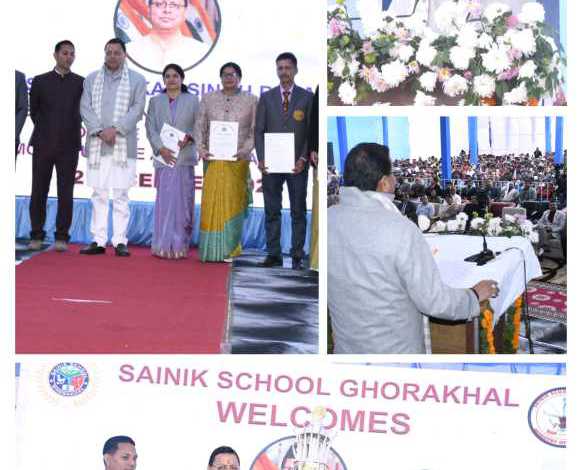 नैनीताल;(उत्तराखंड) – मुख्यमंत्री पुष्कर सिंह धामी ने शुक्रवार को नैनीताल जिले के भवाली स्थित सैनिक स्कूल घोड़ाखाल के हीरक जयंती समारोह का विधिवत उद्घाटन किया।मुख्यमंत्री पुष्कर सिंह धामी ने वार्षिकोत्सव कार्यक्रम में उपस्थित सभी अतिथियों, शिक्षको, अभिभावकों का हार्दिक स्वागत एवं अभिनन्दन किया तथा ईश्वर से ऐतिहासिक सैनिक स्कूल में पढ़ने वाले सभी विद्यार्थियों एवं कैडेट्स के उज्जवल भविष्य की कामना की। उन्होंने बच्चों से विभिन्न क्षेत्रों में जाकर देश एवम् राज्य, शिक्षकों, अभिभावकों का नाम रोशन करने का आह्वान किया।