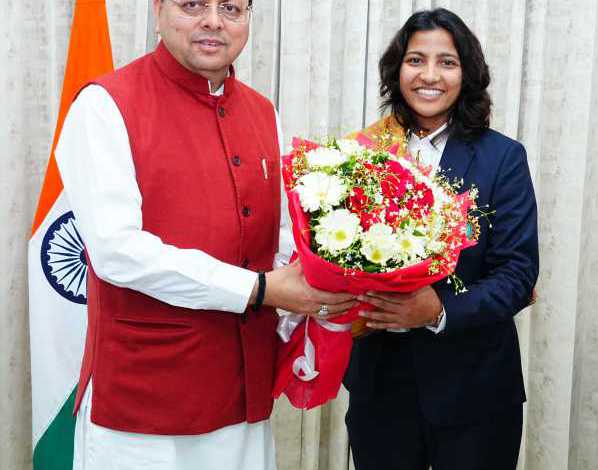 देहरादून(उत्तराखंड) – मुख्यमंत्री पुष्कर सिंह धामी से मुख्यमंत्री आवास में महिला क्रिकेट विश्व कप विजेता टीम की सदस्य एवं उत्तराखंड की गौरव, क्रिकेटर स्नेह राणा ने शिष्टाचार भेंट की।