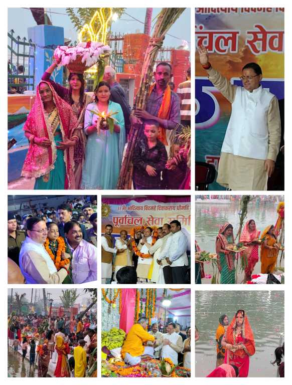 सीएम धामी ने भगवान सूर्य एवं छठ मैया से इस लोक पर्व में सभी की सुख समृद्धि की कामना की।वही पूर्वांचल समाज के महापर्व छठ पर सैकड़ो की संख्या में वर्ती महिलाओ ने परिवार सहित छठ घाट में पहुंच डूबते सूर्य भगवान को अर्घ्य दिया,साथ ही छठी मैया की पूजा अर्चना कर संतान प्राप्ति बच्चों व पति की दीर्घायु सुख समृद्धि कल्याण की कामना की।आस्था का यह महापर्व पूर्वांचल समाज की महिलाए 36 घंटे के निर्जला व्रत रख डूबते एवं उगते सूर्य को अर्घ्य दे इस व्रत का समापन करती है।