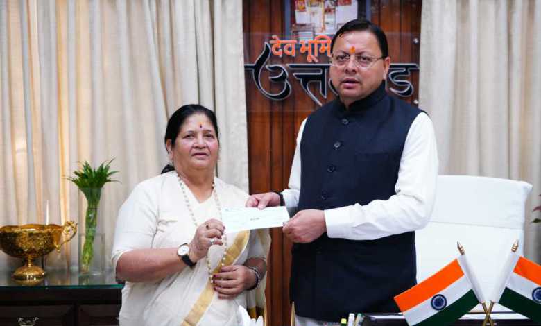 देहरादून(उत्तराखंड) – प्रसिद्ध पर्वतारोही एवं पद्मभूषण सम्मान प्राप्त बछेंद्री पाल ने शनिवार को मुख्यमंत्री राहत कोष के लिए 10 लाख रुपए का चेक प्रदान किया। यह चेक उनकी ओर से राज्य महिला उद्यमिता परिषद की उपाध्यक्ष श्रीमती विनोद उनियाल द्वारा मुख्यमंत्री को सौंपा गया।