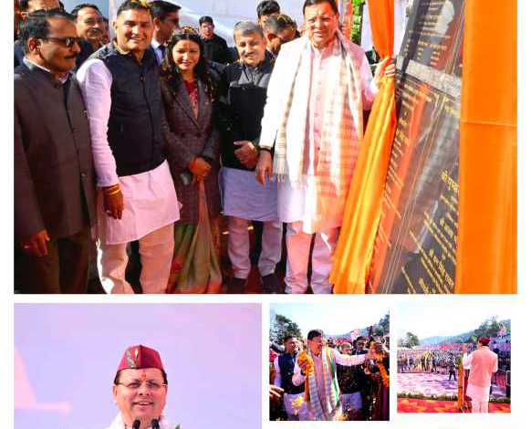 नैनीताल(उत्तराखंड) – मुख्यमंत्री पुष्कर सिंह धामी ने शुक्रवार को लेटीबुंगा मैदान, ग्राम पंचायत शशबनी, नैनीताल में आयोजित कार्यक्रम में प्रतिभाग करते हुए ₹ 112 करोड़ 34 लाख रुपये की कुल 17 विकास योजनाओं का लोकार्पण एवं शिलान्यास किया। इस दौरान मुख्यमंत्री ने कार्यक्रम स्थल पर महिला स्वयं सहायता समूहों एवं विभागों द्वारा लगाए गए स्टालों का भी निरीक्षण कर महिला उत्पादों की सराहना की।