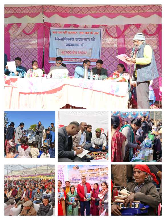 जनपद रुद्रप्रयाग में राजकीय इंटर कॉलेज, तैला में जिलाधिकारी प्रतीक जैन की अध्यक्षता में आयोजित कार्यक्रम में ग्रामीणों द्वारा लगभग 100 से अधिक समस्याएं प्रस्तुत की गई जिनमें से अधिकांश समस्याओं का मौके पर ही समाधान कर लंबित समस्याओं के शीघ्र निस्तारण हेतु संबंधित अधिकारियों को निर्देश दिए गए। शिविर में क्षेत्र पंचायत प्रमुख विनीता चमोली, मुख्य विकास अधिकारी राजेंद्र सिंह रावत, अपर जिलाधिकारी श्याम सिंह राणा, उप जिलाधिकारी जखोली अनिल सिंह रावत सहित विभिन्न विभागों के अधिकारी, स्थानीय जनप्रतिनिधि एवं बड़ी संख्या में ग्रामीण उपस्थित रहे।